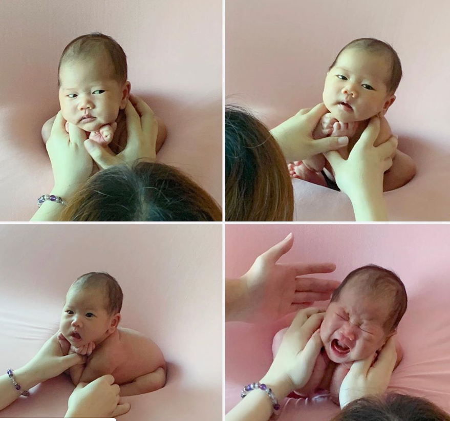 原來這輯照片是女兒出生13天後就已經當上model拍寫真,其中一張相更見她扭計:「我要做Model,影靚相係要付出代價,睇吓(下)我個樣幾衰,D(啲)人話做主角點都要擺下(吓)款,當時我仲唔覺意痾(屙)左(咗)wee wee添。」