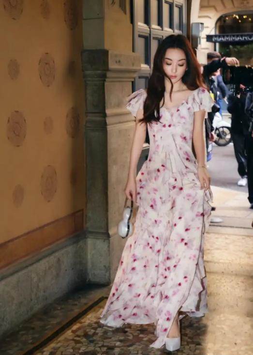 方媛去米蘭參加活動時,穿了一身粉色的碎花長裙,搭配了一條精致的項鏈,站在那里簡直像城堡中出來的公主,看上去非常甜美動人。