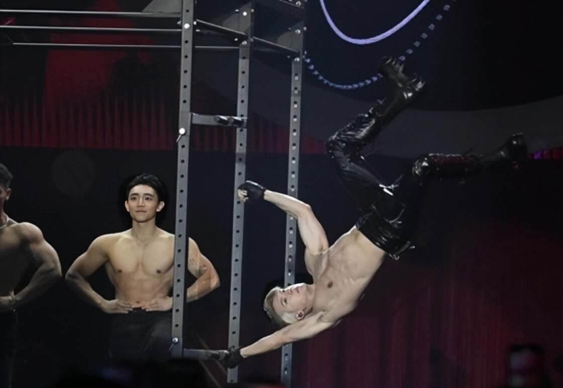 在框架舞表演環節,關智斌爬上框架,準備完成一個高難度的倒立懸空轉動動作。但不知道是手滑,還是體力不支,只見關智斌重重摔在舞台上,發出了一聲悶響,旁邊的伴舞演員們,都嚇了一大跳,更別說台下的粉絲了。