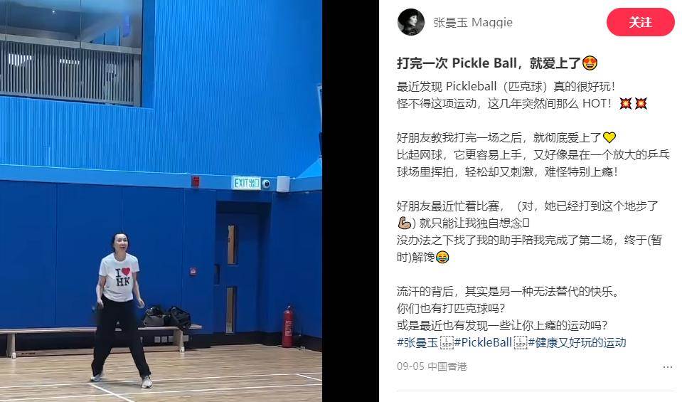 值得一提的是,9月5日,張曼玉還分享了自己在香港打球的視訊,影片中她所穿的T恤上寫著「我愛香港」。