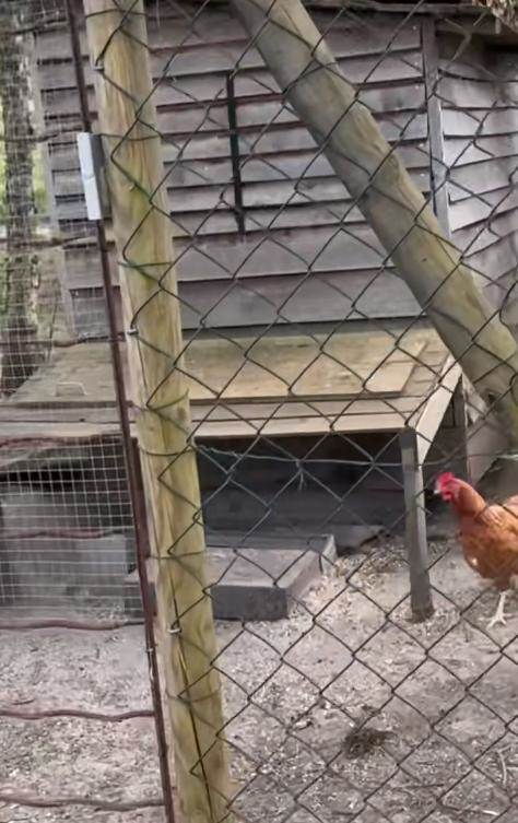 雞圈內的雞窩大約一人高,用木板搭建而成,但由于長年風吹日曬,顯得有些破敗不堪。