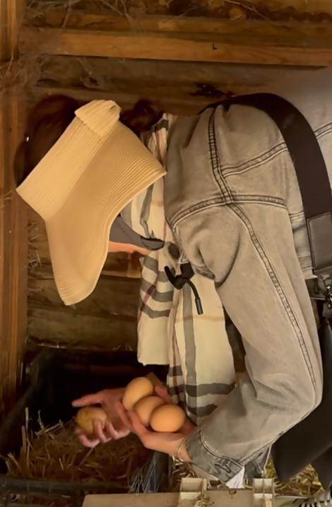 在分享法國農村生活影片時,她還寫下長文記錄了收穫雞蛋的心得:「在城市裡只會覺得雞蛋是日常的食物,可在這,每一次來撿雞蛋時,都會覺得很幸福,也很感恩。」