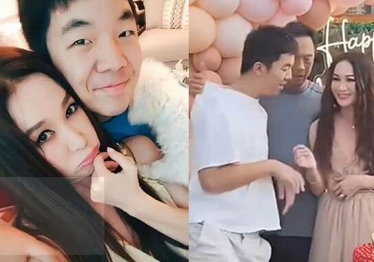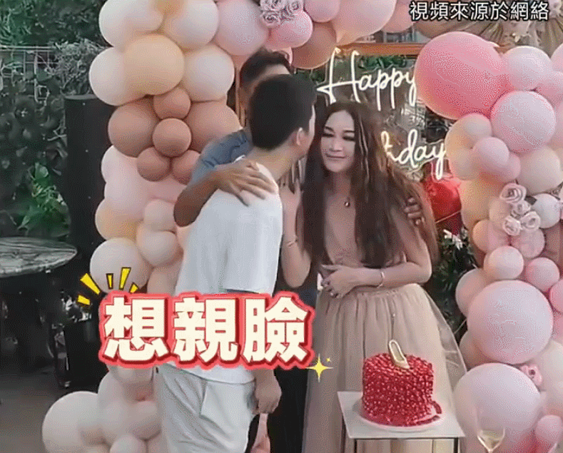 ▲溫碧霞生日被兒子獻吻,老公出手阻止。(圖/翻攝自微博)