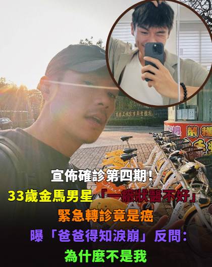33歲香港男星曾以《濁水漂流》入圍金馬獎最佳男配角的演員,在《破浪男女》、《大濛》也有精湛表現。不料在演藝事業正值巔峰之際傳出噩耗,今(30)日透過社群平台宣布罹患第四期肺腺癌,勇敢公開病發過程!