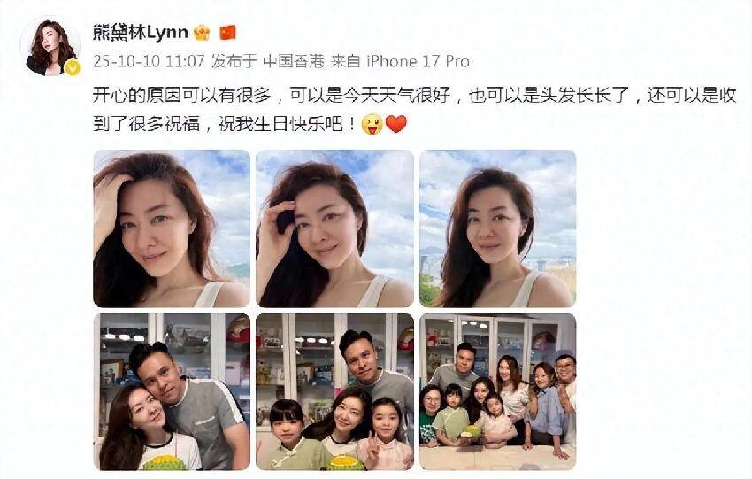10月10日,熊黛林微博賬號曬出45歲生日全家照,一時間刷爆娛樂圈熱榜。