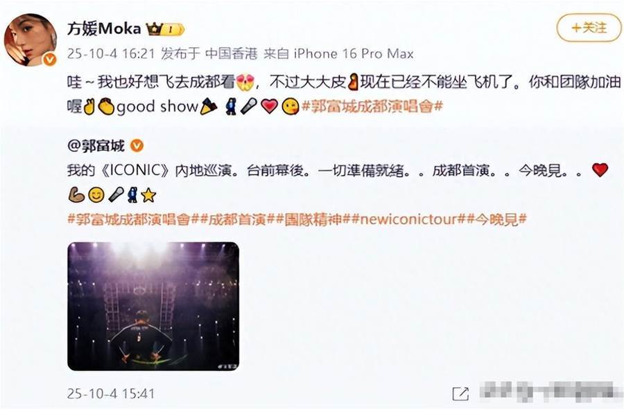 原來那個時候人家方媛還沒有生,還因為挺著大肚子沒有辦法去看老公的演唱會而感到可惜呢!之后郭富城也在演唱會上辟謠。