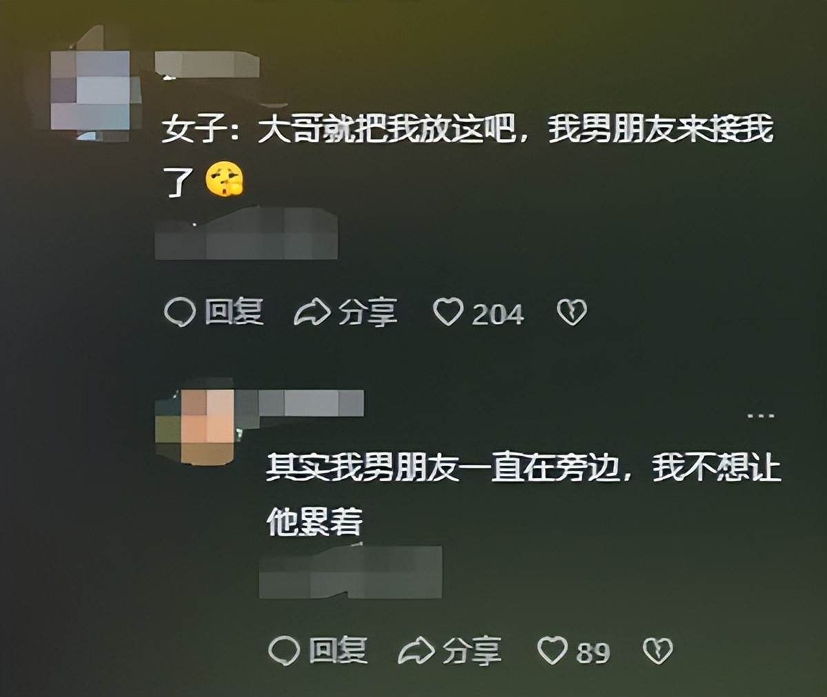 現場有目擊者說,這句話說出來的時候,旁邊人都愣了,女子也有些猶豫要不要繼續等待救援。