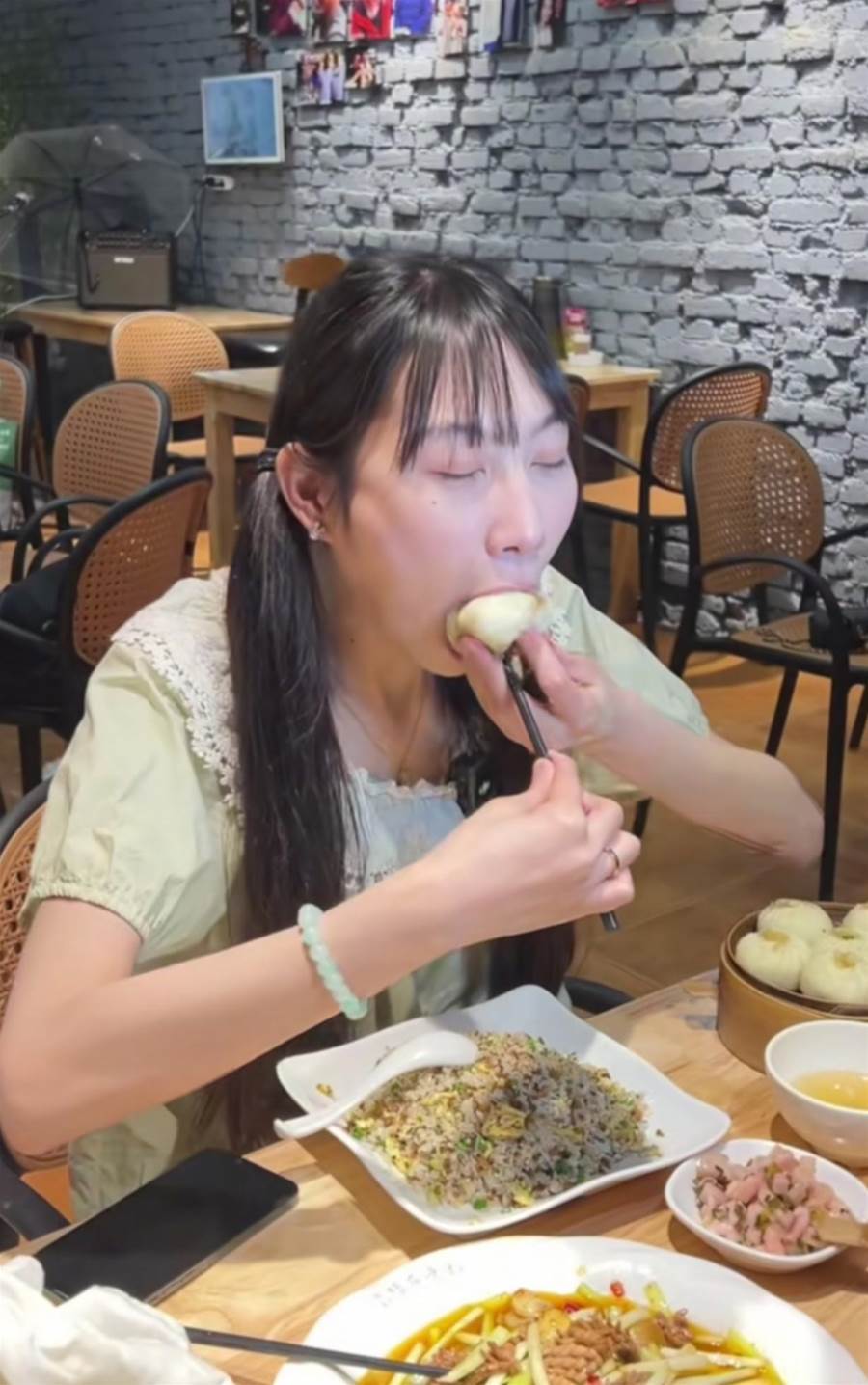 雖然吃的不快,但她一次就能吃十幾斤食物,而且吃也特別香,人也很幽默、可愛。