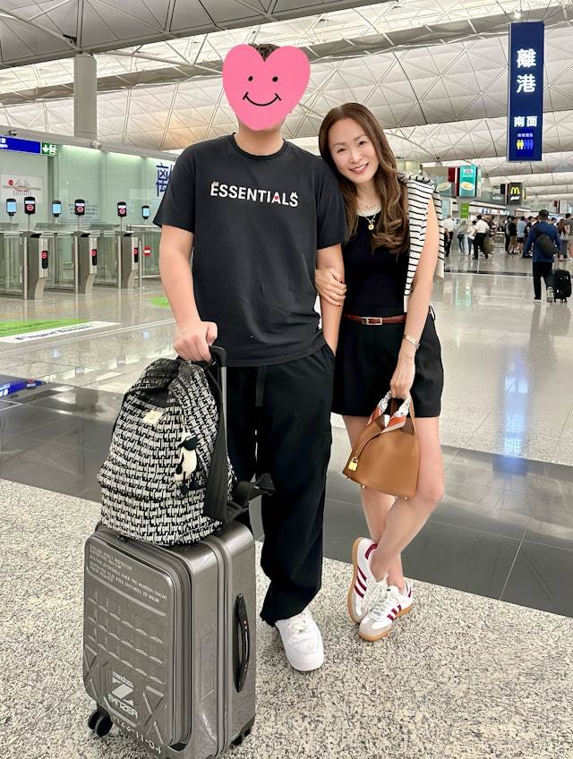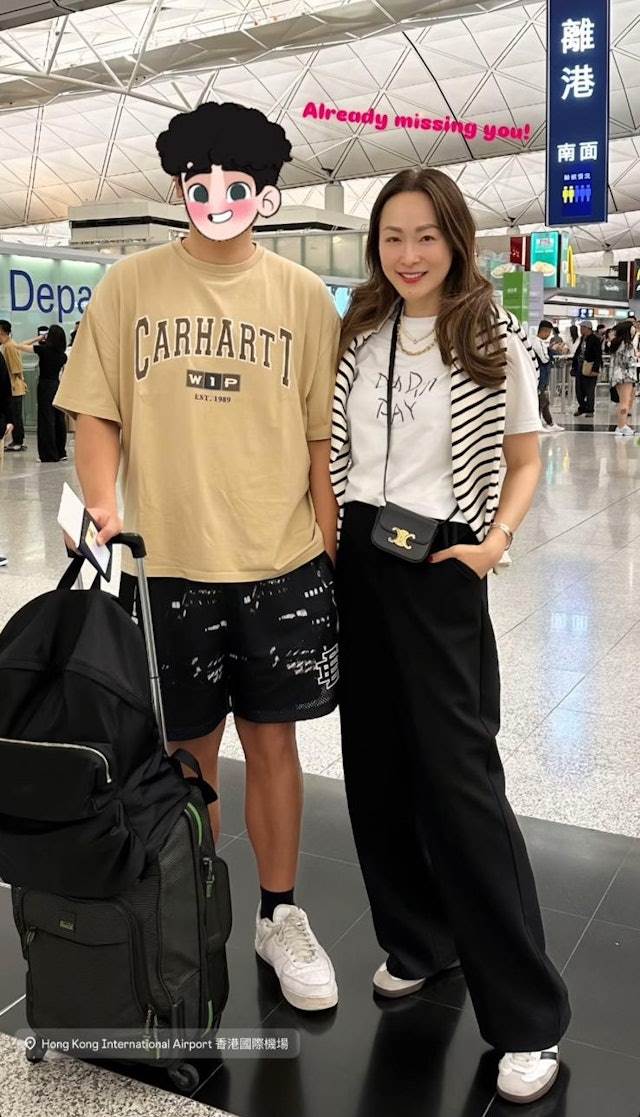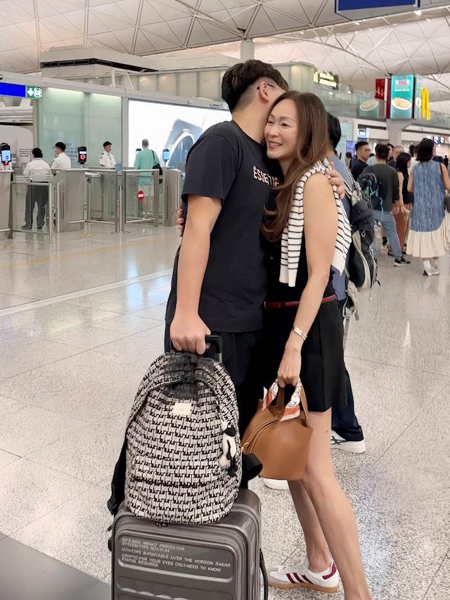 最近,童愛玲在社群平台分享了送兒子回英國開學的照片。