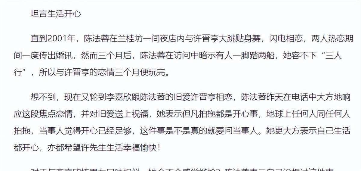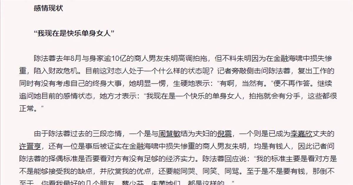 然而,誰都未曾料到,僅僅過了三個月的時間,陳法蓉就公開隱晦地表示這段感情中存在「第三者」。