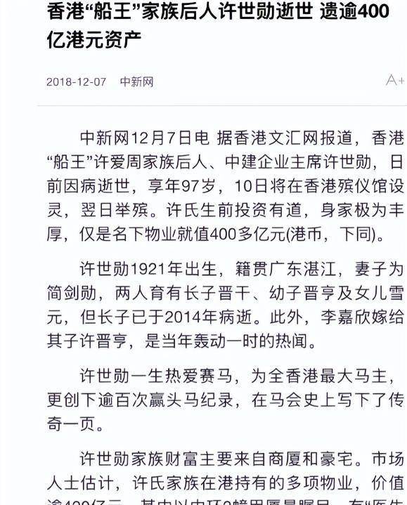 在他父親離世之后,同樣采用家族信托的途徑來處置超過四百億港元的資產。