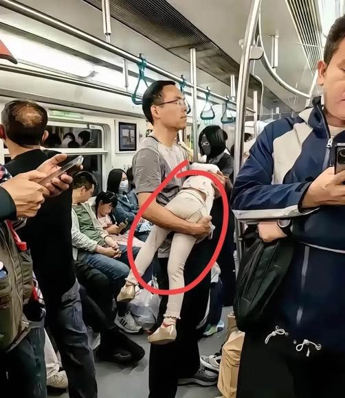 晚高峰的八號線擠得像沙丁魚罐頭。車廂中間突然空出半米見方的位置——穿灰襯衫的男人抱著熟睡的女兒,像座孤島立在搖晃的鋼索上。汗珠子順著他的太陽穴滾進衣領,雙臂紋絲不動地托著女孩指節已經發了白。