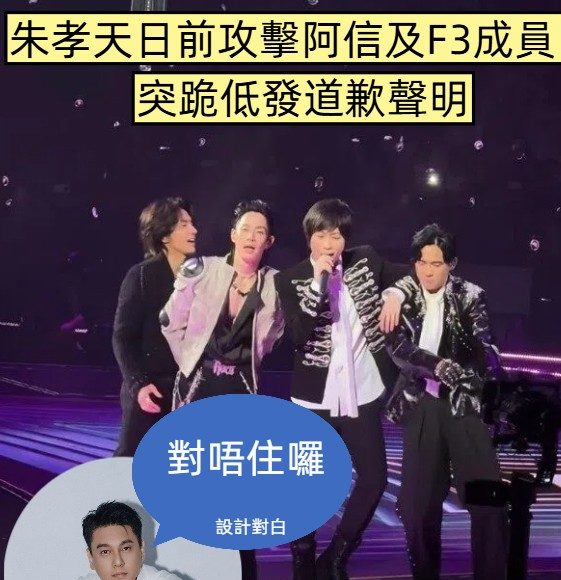 朱孝天日前攻擊阿信及F3成員 突跪低發道歉聲明