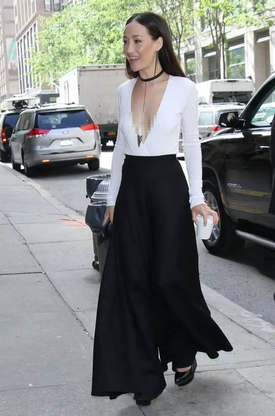 她是真的挺適合穿深V的,根本沒有在乎什麼「臉長不能穿V領」的法則。而且她的性感也是偏冷的,不是那種軟語香魂的性感,所以就算是大面積露出胸前皮膚也不會俗。