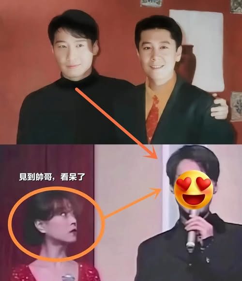從照片上看,黎明拿的話筒正在說話,漂亮的日本女明星站在一旁盯著他看,眼睛里放出光,一副迷妹的樣子,看呆了!