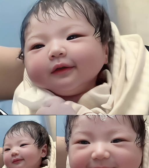 鏡頭裡,那個小小的生命如此安靜。他有著濃密的、略顯溼潤的黑髮,軟軟地貼在額前。他的小臉粉嫩,眼睛閉著,長長的睫毛在眼瞼下投出淡淡的陰影。然後,就在父母屏息凝視的瞬間,他的嘴角似乎輕輕向上牽動了一下,勾勒出一個極其微弱、卻無比清晰的、類似微笑的弧度。