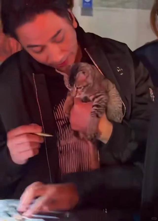 從片場到懷抱:一個「貓奴」的本能在流傳的影片裡,吳卓羲抱貓的姿勢專業而自然,貓咪在他臂彎中全然放鬆,長爪下垂,尾巴輕擺,顯露出十足的信任。