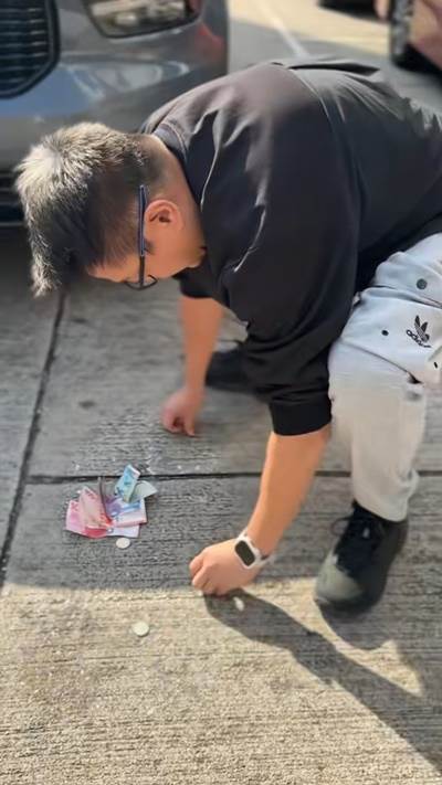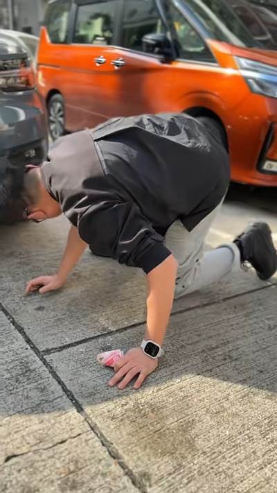 然而,他在市場門口「不小心」掉落硬幣,隨即單膝跪地,雙手撐地在車底尋找零錢的畫面,卻被網友質疑是在「演戲」。有人諷刺道:「哥,我看見你故意把錢丟地下的,這是甚麼劇本?」