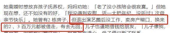 這個時候,陳麗卿幾個前夫向她要錢,無奈之下,她變賣所有房產來換取生活費給幾個前夫。