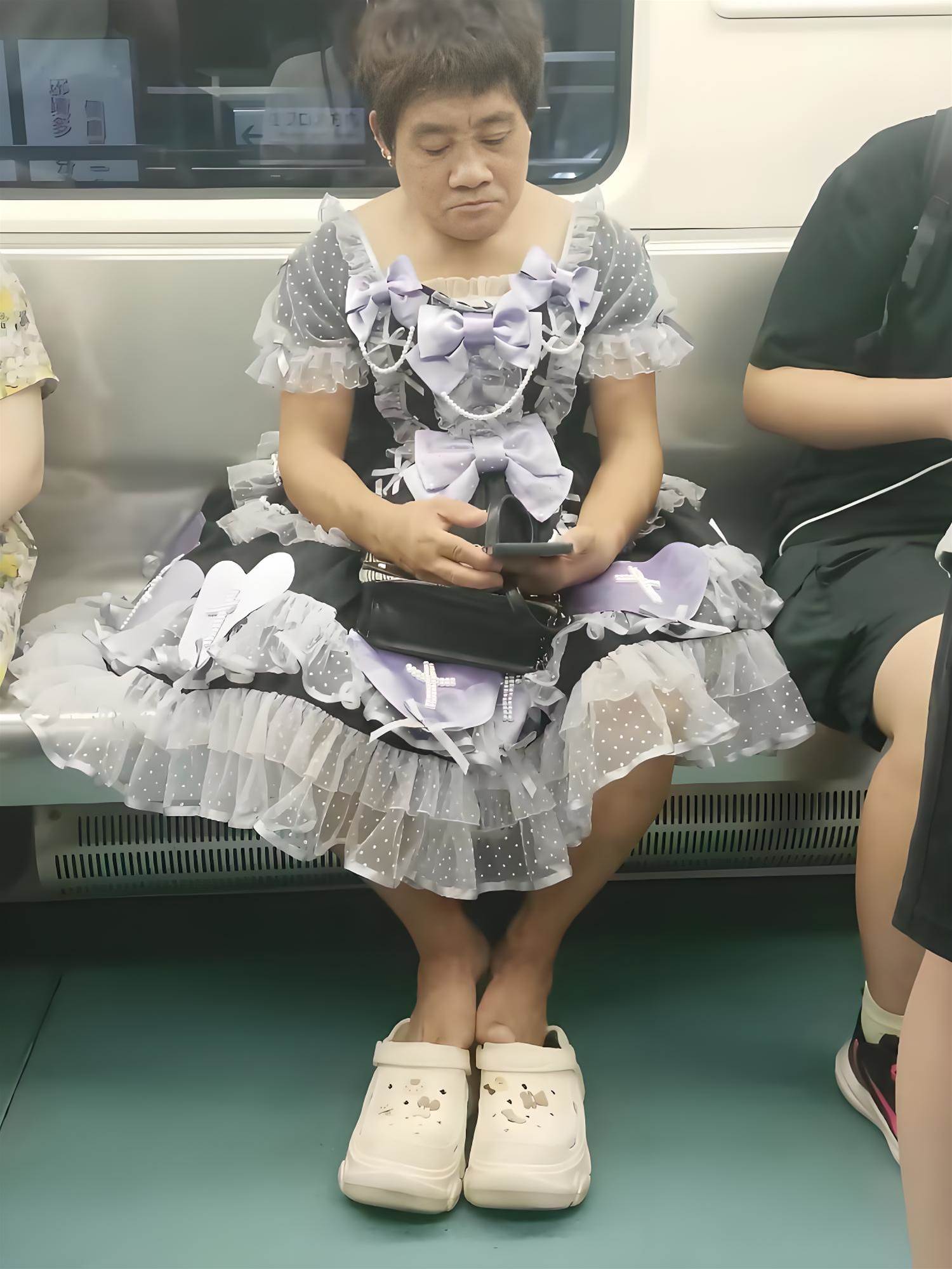 周末的捷運車廂,人流熙攘。突然,一抹扎眼的亮紫色闖入眾人的視線——一位約莫五十多歲的大媽,穿著一身極其夸張的紫色泡泡裙上了車。那裙子蓬松得有些過時,紗質裙擺甚至有些地方勾了絲,與她眼角的皺紋形成了突兀的對比。然而,這份安靜很快就被打破了。「哎喲,我的天,你看那個阿姨……」一個年輕女孩用不大不小、剛好能讓周圍人聽到的音量對同伴竊竊私語,隨即發出一陣壓抑的嗤笑。「真是活久見,這麼大年紀了還穿成這樣,以為自己還是小公主呢?」另一個聲音加入進來,帶著毫不掩飾的譏諷。「心理年齡年輕唄,就是有點嚇人。」有人「小聲」地點評道,聲音卻清晰地回蕩在車廂里。