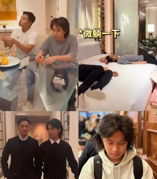 這是酒店特別為父子倆做的安排,除了讓父子倆能夠住得舒適之外,也有幫忙宣傳的意思。郭晉安帶兒子游澳門,18歲兒子長發及肩高過父親,父子住總統套房