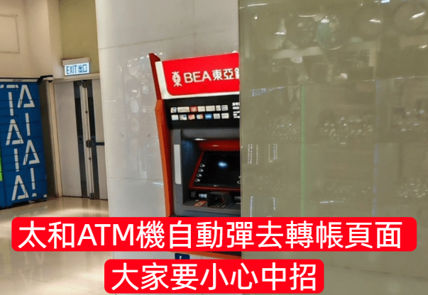 太和ATM機自動彈去轉帳頁面 提防中招