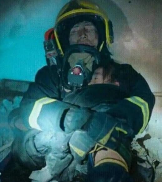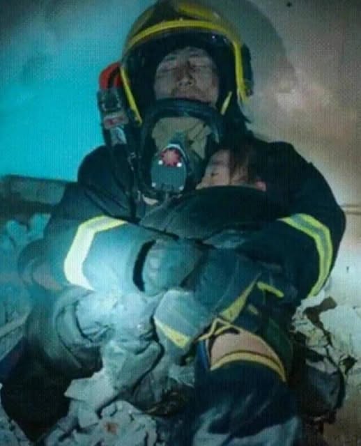 在這生死關頭,楊科璋堅定地說:“大家不要慌,絕不能放棄!我先把小女孩救出去!”並吩咐戰友對被困母子進行安全防護,自己則用滅火防護服裹住女童,摟在懷裡,把空氣呼吸器的他救面罩套在女童的頭上,毅然拉開了房門。女童又哭又鬧,使勁掙扎,楊科璋邊哄邊調整她的面罩,並在黑暗中焦急地尋找往上轉移的通道。突然,一腳踏空,掉進了尚未安裝電梯的電梯井裡,瞬間失去了蹤影……