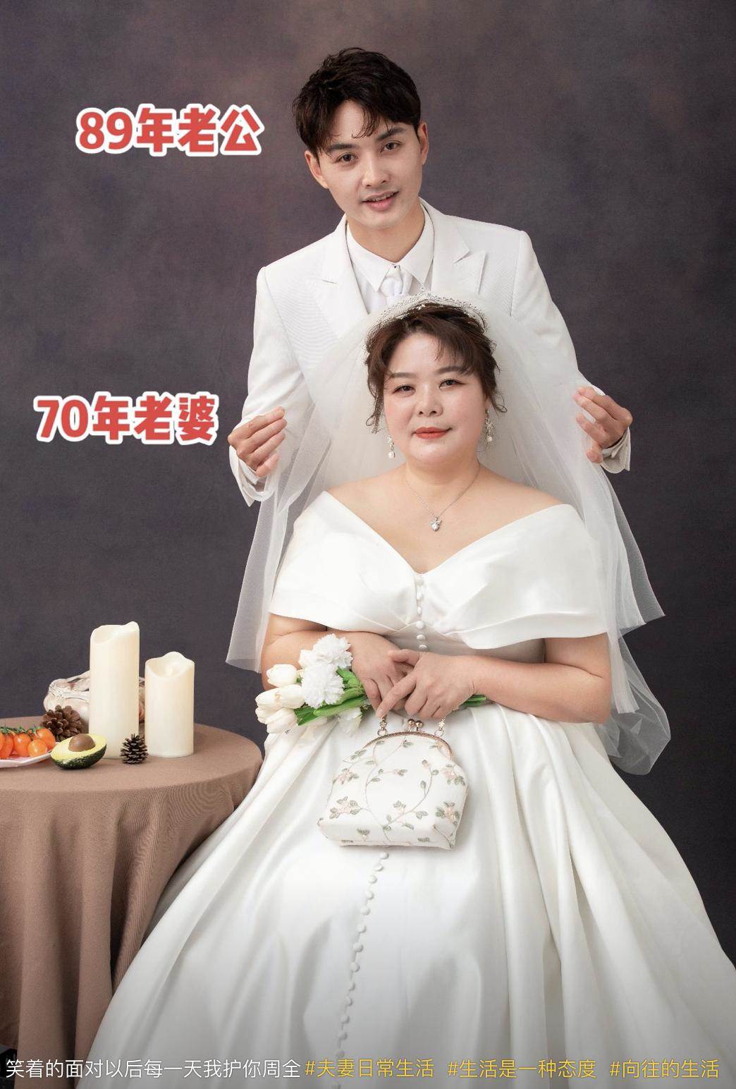 在婚紗照上,袁波刻意標注了兩個人的年齡,讓網友們一眼就能看出他們相差了19歲。