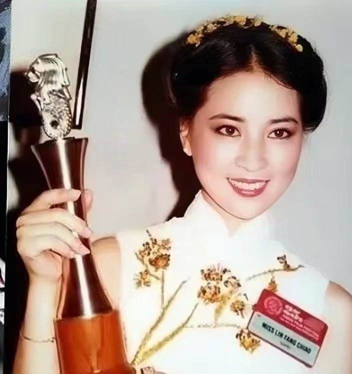 一旁的林鳳嬌,同樣讓人難忘,盤著公主頭,五官布局緊致,眼神溫溫柔柔,美在大方,手捧著獎杯,甜笑面對鏡頭。
