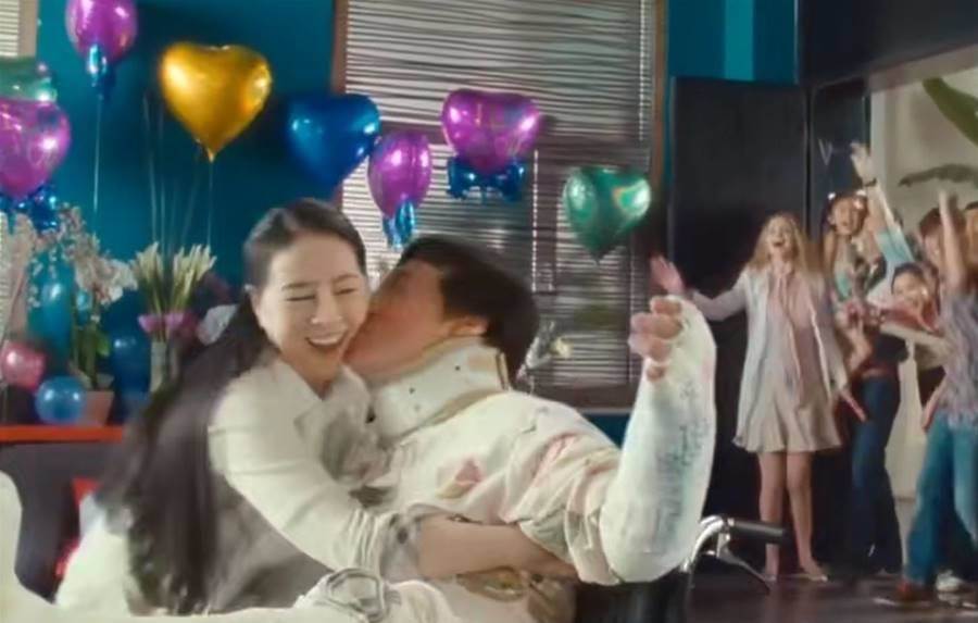 影片里的「大嫂」,一頭烏黑亮麗的長髮,容貌已經老去,可氣質不減,成龍親密一吻,遲到40年的恩愛。